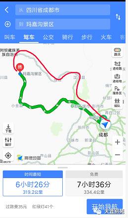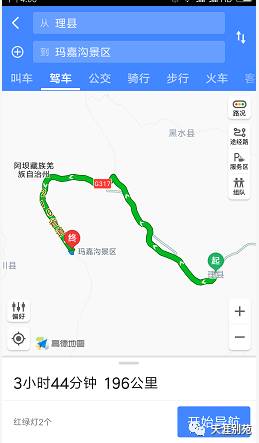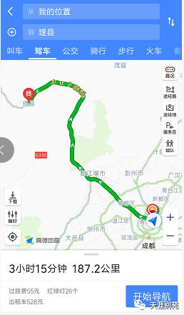从成都到玛嘉沟的总计车程是六个多小时,但是因为不了解蠢得哥哥的车技如何,也考虑到可能走小金县那边开夜车,路况复杂,所以我们决定走理县那边,到理县吃个宵夜,然后再住一晚,所以我们把行程分成了下面这两段路,虽然是远了点,但是好歹安全不是。