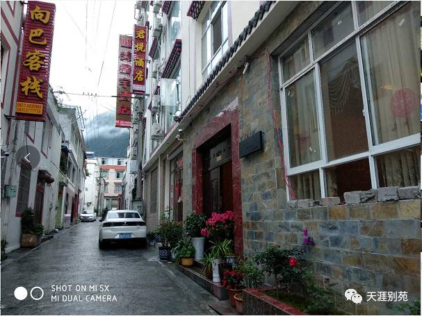 月黑风高的下雨夜,反正我们当时是不知道怎么进去,然后给酒店打了个电话,结果人家大姐二话不说就在半夜冒雨出来接我们,必须给她三十二个赞。停好车,大姐给我们找了伞,然后给我指了吃宵夜的地儿,放好行李,我们二话不说直奔吃东西的地方,对了,住的地方大厅茶几上还摆着理县特有的红脆李还有苹果,自来熟的我们把盘子里的李子一洗而空。这条小巷子就在主道的旁边,里面有很多这种有点像家庭式的酒店,各大网站都可以定,价格便宜,环境也都还不错。