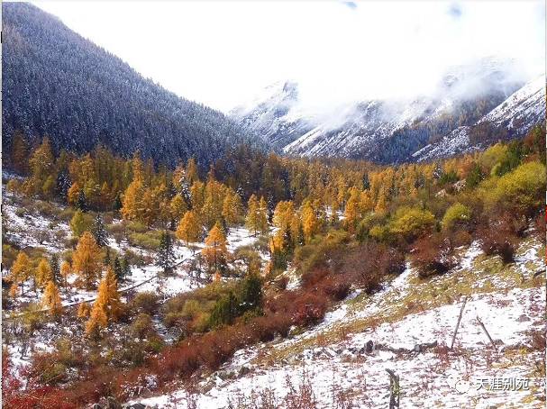 反正不知道是眷顾我偏爱雪还是怎么的,反正每年我进川西,不管是春天还是秋天,我都可以赏雪。哈哈哈(后来的后来,我才知道,川西的彩林在我玩完之后的一周全都银装素裹,我们才知道这对我们是一种多大的眷顾)
