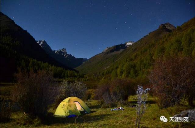 我们所在的河滩地,不远处有干海子营地,哪儿可以露营,可以烧烤,可以看星星看月亮,还可以划船。当然这儿不是终点,只能算半道,由于时间的原因我们没有往深处走。就把周围一圈转了一下。虽然我没去,但是把路线还是为小伙伴们打探好了的。当你们到达河滩地的时候,可以继续徒步,去到月亮湖,据说景色很不错,不过路不是很好走,当然往左边那片山是可以玩穿越的,翻过去就到了隔壁县,据说也有一群户外爱好者玩穿越,但是那却勾不起本宝宝的兴趣,因为我能爬山却不能负重,更不接受爬了那么久的山没有美美哒的照片,所以穿越注定与我无缘。有喜欢的小伙伴也可以去那边组队,据说景色不错。